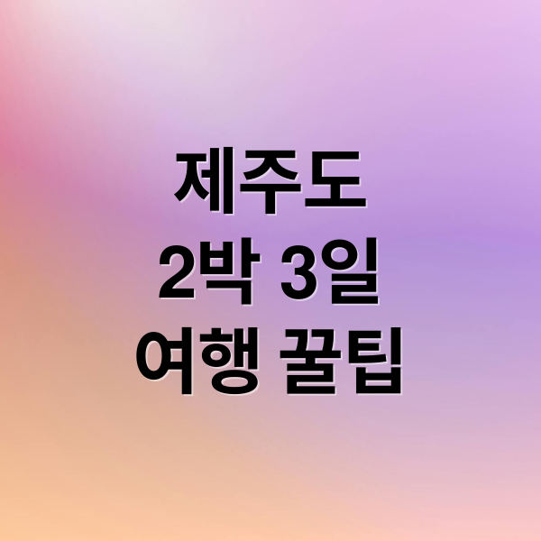 2박 3일 동안 제주도의 매력을 알차게 즐기는 방법을 소개할게요. 지역별 명소와 맛집, 꼼꼼한 준비물까지 완벽하게 안내하여 짧지만 기억에 남는 여행을 만들어 드릴게요. 숙소 위치에 따른 효율적인 코스, 놓치면 아쉬운 맛집, 추억을 담아갈 준비물까지 모두 알려드릴게요.